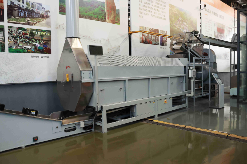 作業(yè)原理:機組運用自主發(fā)明的核心專利技術,遵循“透氣不悶”的制茶原理,茶葉在筒體內(nèi)處于旋轉拋撒狀態(tài),熱風充分接觸,受熱均勻,水份散發(fā)快、透氣性好,可連續(xù)完成茶葉的初脫水工藝流程。
