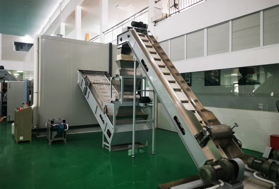 作業(yè)原理:連續(xù)發(fā)酵機可在發(fā)酵過程中實現(xiàn)供氧、換氣、加溫、增濕等功能,科學布局溫、濕度管道保證相對恒定的發(fā)酵環(huán)境,連續(xù)發(fā)酵機主機置于發(fā)酵箱體(房)內(nèi),設(shè)置多層輸送網(wǎng)帶,揉捻葉達到發(fā)酵要求后,自動流出到下個環(huán)節(jié)。