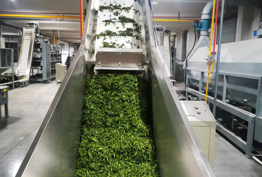 茶葉輸送機是茶葉加工生產線的重要組成部分,分皮帶式、振動槽式等,可平面輸送、高低錯位輸送,根據需要再配套勻葉、清理、調速、除塵等裝置,在整個生產線中起到連接主機、控制產能、平衡流量等功能,是生產線實現不落地、清潔化生產必不可少的配套設備。