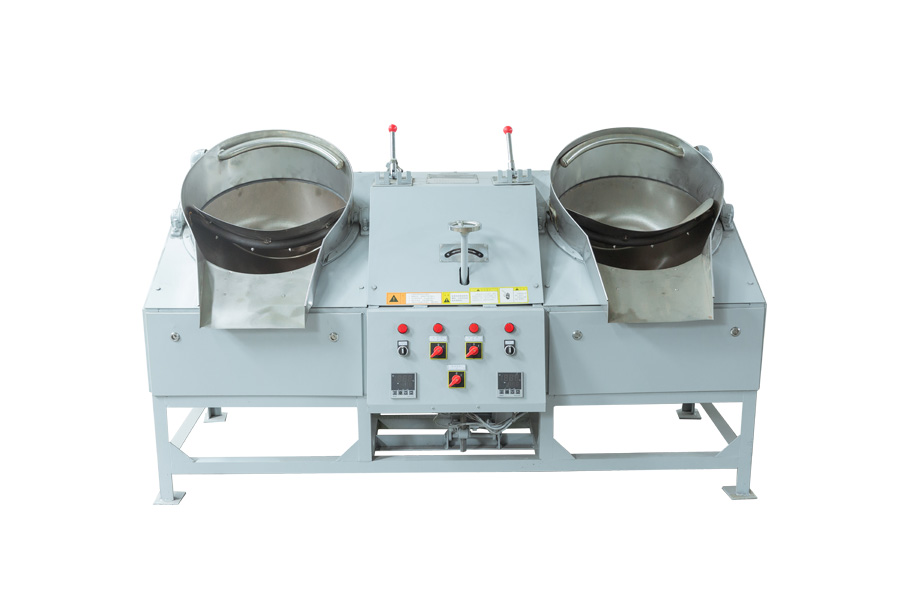 (2)、雙鍋曲毫炒干機(jī)適用于各類卷曲型、球型名優(yōu)茶的做型炒制作業(yè)。目前市場(chǎng)上有50、60兩種鑄鐵鍋和壓制鍋兩種,壓制鍋外形更好,但在加熱后易變形,引起抄板和鍋?zhàn)涌ㄋ阑蜷g隙變大,從而增加碎茶或炒制茶葉外形不緊,鑄鐵鍋不存在這種現(xiàn)象,我公司一直使用鑄鐵鍋,50型采用掛擋調(diào)速、60型采用變頻調(diào)速。
